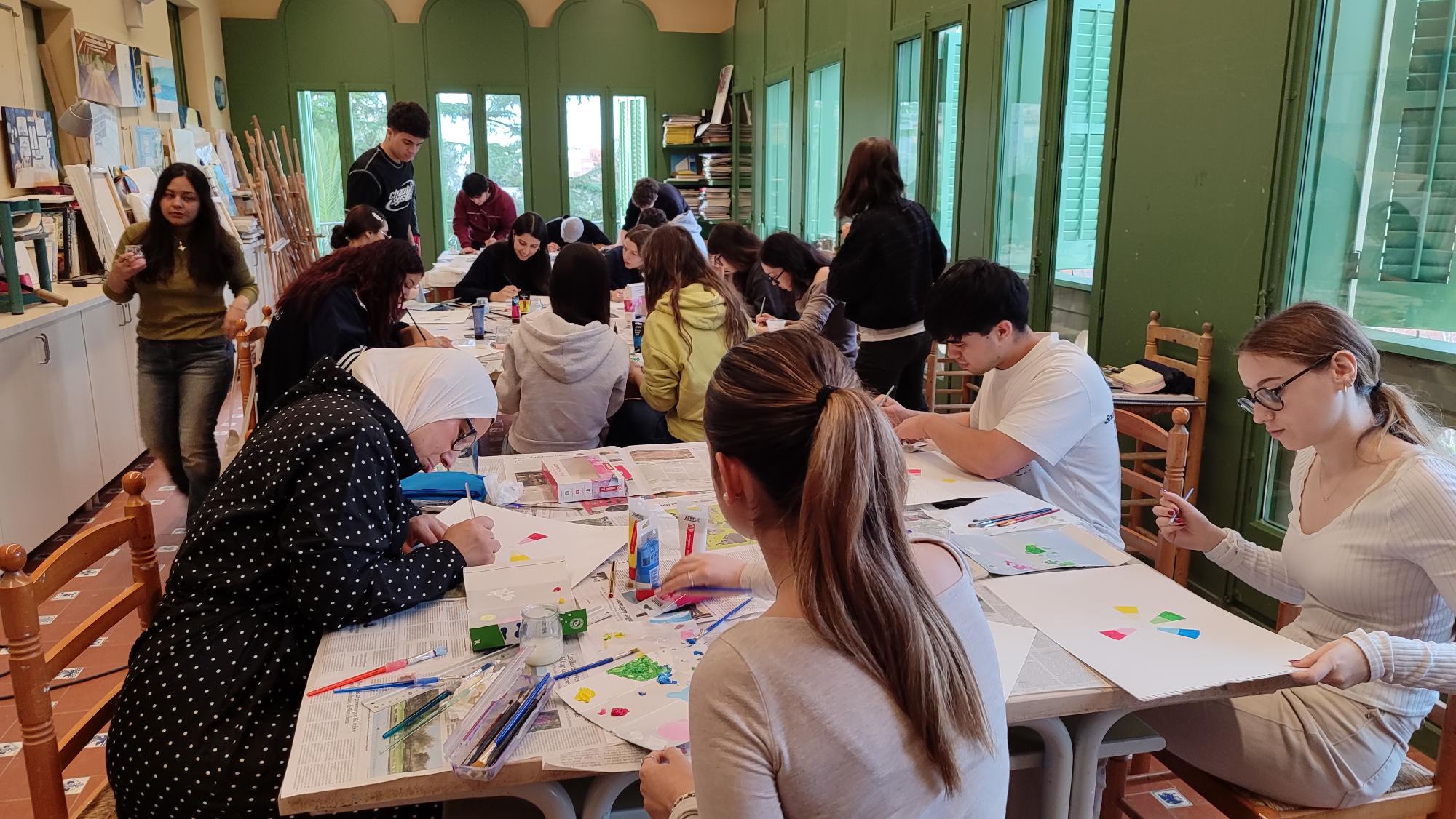 L’alumnat del Grau Superior de Gràfica Publicitària de l’IFP Antoni Algueró (Sant Just Desvern) ha començat a endinsar-se en el món del color dins del mòdul de Fonaments de la Representació i Expressió Visual. Per fer-ho d’una manera més vivencial i pràctica, han vingut a les aules de les Arts Plàstiques Creantart per fer dues classes de quatre hores centrades en la teoria del color amb la professora Puri Martín.